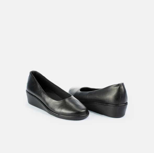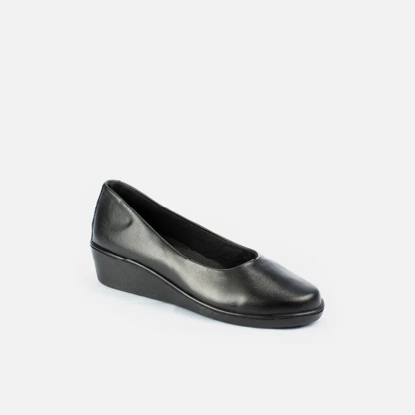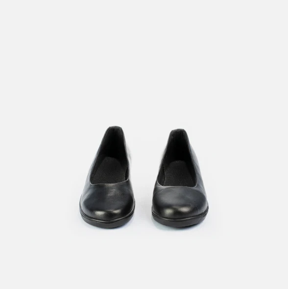 Baleta institucional en material sintético, con tacón corrido de 2.5 cm que brinda comodidad y estabilidad durante toda la jornada