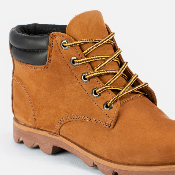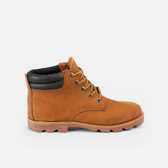Bota en cuero con suela de caucho, resistente y duradera, ideal para labores del agro. Ofrece tracción y protección en terrenos exigentes.