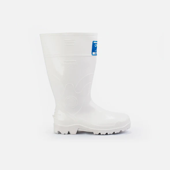 Bota de seguridad en PVC impermeable, resistente a hidrocarburos, con puntera de seguridad y diseñada para entornos húmedos y exigentes. Su construcción robusta asegura protección y durabilidad.